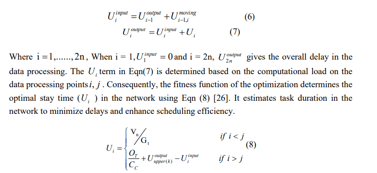 Afterwards, the optimization’s fitness function is triggered to determine the duration of data processing in each connection with their tasks ( Ft ). And is denoed in Eqn (3) [23].This is used to calculate processing time, helping HLEVRA allocate resources efficiently and reduce latency.