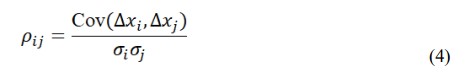 To remove redundant information, the cluster head calculates the correlation coefficient between node readings given in equation 4.