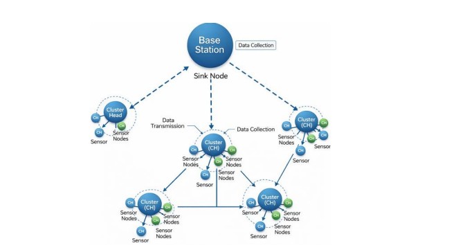 Wireless Sensor Networks (WSNs) are key parts of many modern systems where data is sampled, such as in smart farming, health care, smart cities, environment scanning, in industry, and militarily people “keeping an eye” on places. In such systems, many sensor nodes can be spread in a wide area for the purpose of capturing important information such as temperature, humidity, pressure, vibration, motion, etc., with constant updates which they can then send back to a base station [1]. The base station then analyses the observations for judging or control. Even though WSNs have many options of use, they are restricted by low battery life, very low processing power, and very limited communication resources. Communication consumes the greatest percentage of energy among all operations of a node, giving high priority to minimize or remove redundancy when designing the network. When dense clusters of sensors are in a geographical area, they will often observe the same environmental factors, and transmit redundant, repetitious data. If this redundancy is not handled and ruled properly, it will cost in energy waste, quickening sensor death, leading to contention of added sensors, and increasing the ratio of failure. In many cases, advancement on real-time large-scale infrastructure or remote environmental observation, placement of WSNs themselves becomes impractical or simply impossible to replace or recharged nodes batteries [2]. Therefore, to have WSNs working in the long and short terms, cost (redundant transmission) must be reduced while studied data must be kept in safe condition and free of loss. It therefore gives necessity for efficient data aggregation that robustly intelligently eliminates repetitive data, while maximizing the use of energy with no loss of data integrity. In Figure 1, Sensor nodes sense environmental data and send it to Cluster Heads (CHs), which aggregate data and forward it to the Base Station. Communication dominates energy consumption [3].