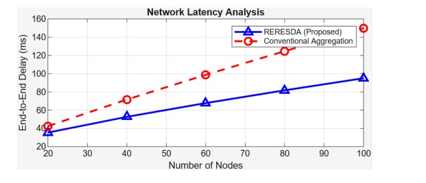 Figure 10. End-to-end network latency comparison between the proposed RERESDA scheme and the conventional aggregation approach.
