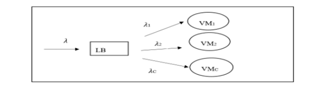One more rational choice for the distribution policy is to balance the load (LB module) equally among the servers (VMs), so that 𝜌𝑖 = 𝜌𝑗 for all i and j in the pool. To this end, this strategy uses the probability distribution: