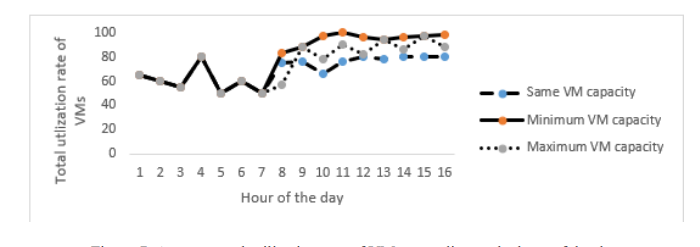Figure 7. Average total utilization rate of VMs according to the hour of the day