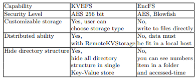 Table 3. Theoretically comparison between KVEFS and Encfs