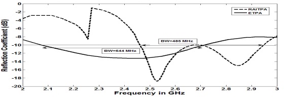 Figure 21 shows a comparison between results obtained from second and third proposed designs.It can be depicted that both designs are operated around 2400 MHz. Moreover, by using ETPA,more bandwidth can be obtained.