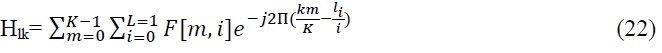 where wnl = e-j (2πnl/N) . Let A= XFK×L. Then (18) can be written as:
