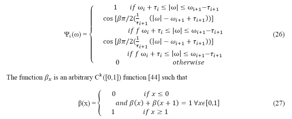 The empirical wavelets are defined as band pass filters on each segment. Empirical scaling function and empirical wavelets are defined by expressions, (25) and (26) respectively