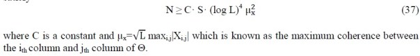 where Y and f are M × 1 column vector and M × N measurement matrix respectively. Based on the CS theory signal recovery can actually be made possible when the matrix Θ = fy obeys the rule of Restricted Isometric Property (RIP). For each integer n = 1, 2, . . .N isometry constant δn > 0 of a matrix f can be defined as the smallest number and | · | is defined as the amplitude of a complex number, For signal reconstruction to be successful, must satisfy [28]: