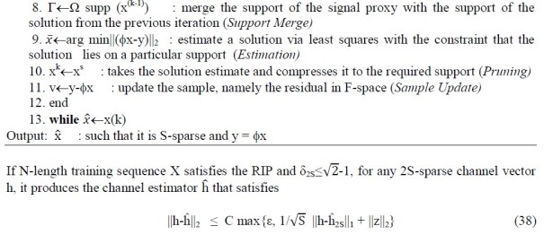 Problem with Algorithm 2 is that it is not adaptive, pre-estimate of the sparse degree of the sparse signal is needed and the reconstruction accuracy is not satisfactory. In reality, the sparse degree of the sparse channel is usually unknown. Nam Naguyen et al. [30] proposed extended OMP-CS algorithm in order to improve the accuracy of reconstruction, and make the algorithm adaptive. In the ExtOMP-CS algorithm, one key issue is how to choose the step size. Unlike the OMP-CS algorithm, the iteration times of ExtOMP-CS algorithm is not certain and is related to step size and computational complexity and computational time are higher in the ExtOMP-CS algorithm than OMP-CS algorithm.