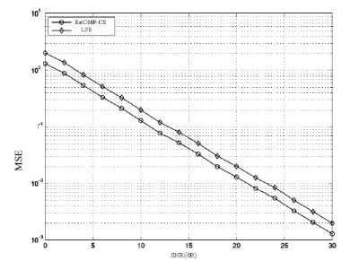 The MSE performance of the proposed estimation method will be evaluated by simulations and compared with the MSE performance of LS. It is obvious that smaller MSE means more accurate channel estimation and vice versa. MSE is defined as