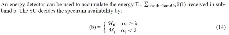 After spectrum reconstruction SUs sense the channel in order to find the spectrum holes (SHs), which can be described as the hypothesis testing problem, mathematically: