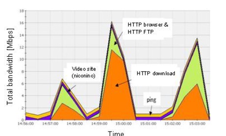 Applications could be classified into a ‘bandwidth type’ (applications that use a large bandwidth) and a ‘transaction type’ (applications that demand high CPU usage). As for bandwidth type, DPI equipment can estimate applications and bandwidth used for each server. For example, if the amount of bandwidth for videos exceeds a certain threshold, it is possible to reduce bandwidth for