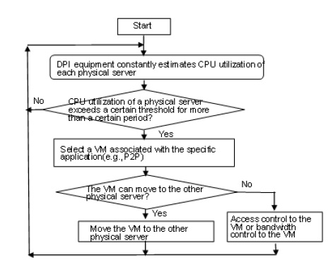 DPI equipment installed at any arbitrary point in a network can monitor communications of many servers simply and analyze the type of processing to be applied to packets without packet capture tools and skilled engineers in every server. This could simplify dramatically the conventional work load for system management and reduction of power consumption by servers and accelerate the control action. Moreover, DPI functions can be virtualized and deployed on commodity hardware as a piece of software with Network Functions Virtualization (NFV) [5]. It enables to rapidly scale up (or down) the deployment of DPI functions economically [6], as it only requires the installation of virtual appliances on existing server equipment.