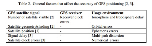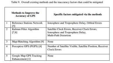 Perceptive GPS (PGPS) was used by Chung [4] is to improve GPS accuracy. According to Newton’s Third Laws, This algorithm uses GPS data as navigation reference units to infer the motion of the carrier. The PGPS method does not require an auxiliary hardware to support it and it is also sensitive to the carrier’s behaviour. The table below (Table 7) show the factors that affect the GPS positioning accuracy and the specific factors that cannot be mitigated by the method.