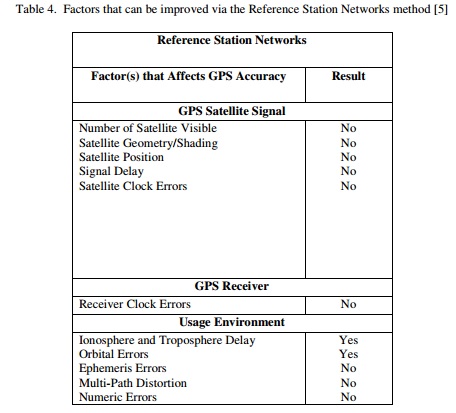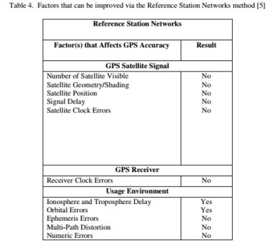 Based on Table 4, the usage of Reference Station Networks can minimize ionosphere and troposphere delays as well as orbital errors. By minimizing these factors, the accuracy of GPS can be improved.