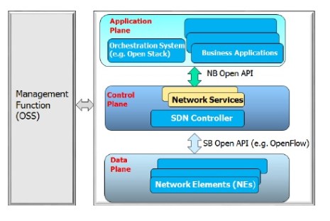 Software Defined Networking (SDN), is primarily about decoupling of control plane from the data plane, dealing mostly with the lower layers (L2-L4) function, where network intelligence and state are logically centralized and underlying network infrastructure is separated from applications. Details of SDN architecture as defined by Open Networking Foundation (ONF) can be found in [6].