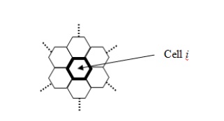 When a call is terminated/completed or handed off from a current cell to another, the released bandwidth can be reallocated among ongoing calls to improve user satisfaction or used to handlenew calls. As in [3] [6], we consider the multi-class case where calls in different classes have different sets of bandwidth levels and calls within the same class have the same set of bandwidth levels. Classes can correspond to types of applications of the calls, i.e., video, voice, and data.We also assume that the movement patterns and durations of the calls are known with great accuracy. Efforts to approximate even roughly these parameters would definitely be beneficial tothe cellular network operator. Indeed, the issue of mobility and hence the issue of the estimation of the parameter atij (defined later in this section) are important. As long real system measurements of the parameter are not available, one can choose to estimate (and refine the estimation of) this parameter based on the application type, the average speed of the mobile call, the historical movement patterns, and the geographical features of the region where the call originates, among others [4]. For example, if the caller’s position coincides with that of a highway, both the general speed and direction of the call can be predicted to a significant extent based on signal strengths received by the base stations [4]. It was observed that mobile terminal users have well defined routes and behavior when driving [4]. The introduction of vehicle automatic navigation systems and future deployment of intelligent highway systems will increase the accuracy of the estimation of the parameter atij Traffic measurements regarding movements and durations of mobile calls are instantaneously collected in a wireless network. Hence, the estimation of the parameter can always be refined based on statistical analysis of such measurements. Indeed, Levine at al. [4] developed a stochastic method, called shadow cluster, to estimate these parameters with great precision based on such factors as geographical features of the current position, velocity, type of application, and historical behavior of the callers.