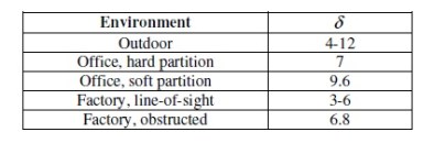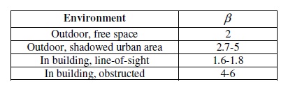 Due to multipath propagation effects, the received power at a receiving antenna is not a deterministic function of the communication distance as shown in the two models introduced earlier. Instead, the received power fluctuates as a random variable. The shadowing model [10] better reflects this characteristic of the received signal power than the other two models introduced earlier. The path loss is usually expressed in dB as follows in the the shadowing