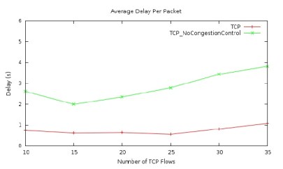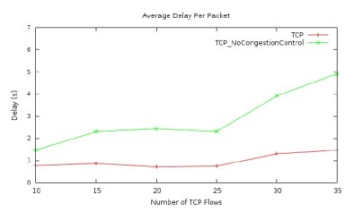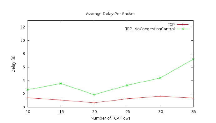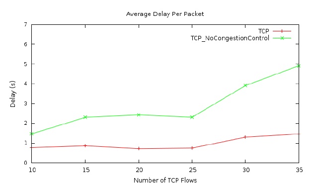 congestion control is disabled, the average packet delay becomes much higher as compared that when the TCP congestion control is enabled. In addition, Figures 7 presents that when the TCP congestion control is disabled, the average packet loss rate is much higher than that when it is enabled. Therefore, in the case of the UAV network using the two-ray ground link model, TCP congestion control still significantly improves the performance of the network.