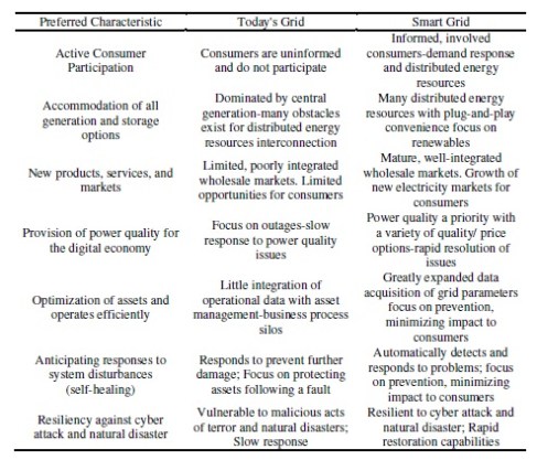 Table1. Comparison of Today’s Grid vs. Smart Grid [1]