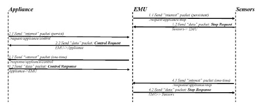 Since EMU cooperates with home sensors, it should put forward a novel ICN-REM scheme. In this scheme, four kinds of control messages such as Stop Request, Stop Response, Control Request and Control Response are used to assist EMU for this energy-efficient function in ICN-REM.