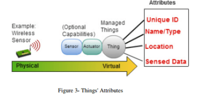 Things are virtually represented using attributed on the management database of the IoT-MP. The management database is discussed in more details in Section 3.3. The representation of things using attributes is shown in Figure 3.