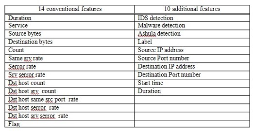 In this paper, we execute detection experiment using Kyoto2006+dataset[5] which is obtained by the honeypot systemdeveloped in Kyoto University. It consists of 14 conventionalfeatures and 10 additional features (Table 2). We use SourceIP address, Destination IP address, Source bytes, Destinationbytes and Label.