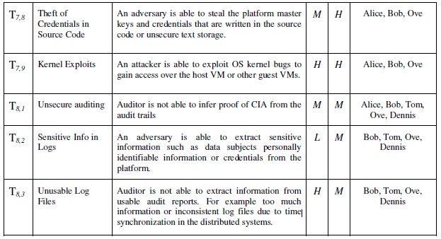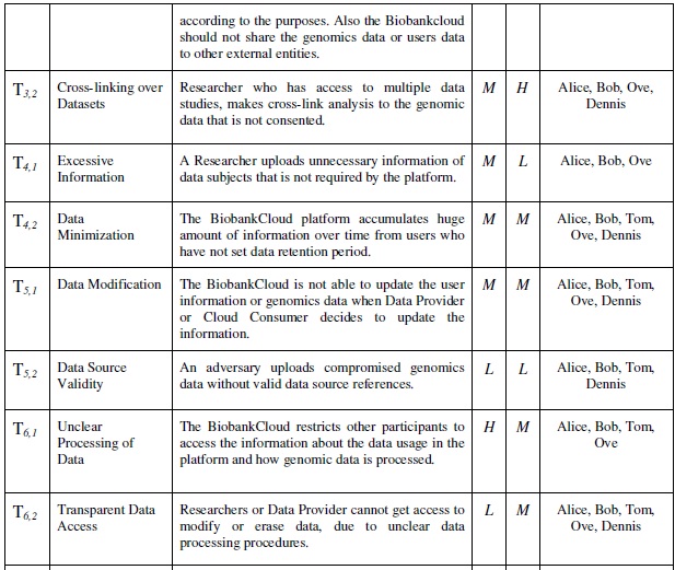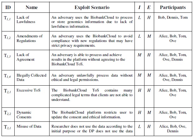 The BiobankCloud participants such as analyst, architects and lawyers participate and evaluate the important of the threats as summarized in the Table 3.