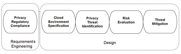 Our proposed methodology identifies the privacy requirements in the Requirements Engineering step, as shown in Figure 2. The results from the Requirements Engineering, which include specifications for privacy regulatory compliance, are fed into the Design step, where activities such as specifying the appropriate cloud environment, identifying privacy threats, evaluating risks and mitigating threats are conducted. Then the produced privacy threat model would be used in the implementation step finally it would be verified and validated in the subsequent steps.
