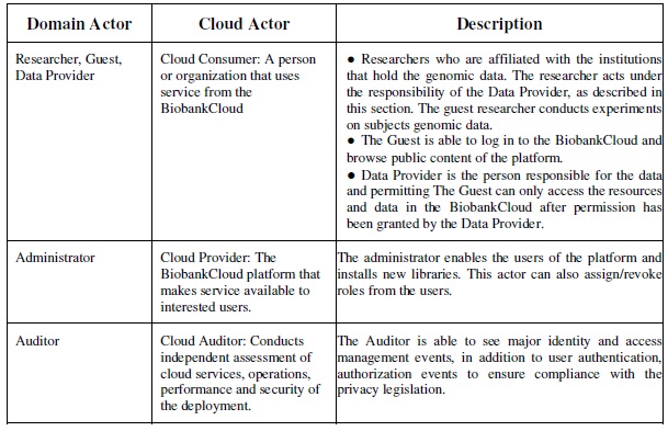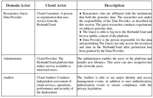 Table 1, Correlating the Domain Actors to the Cloud Actors