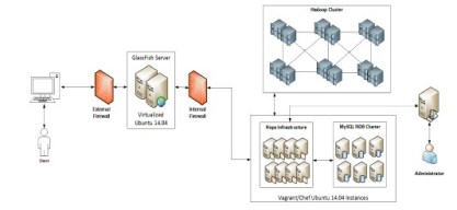 GlassFish server version 4.0.1 over JDK 7.0 is used to run the big data lab information management system (LIMS). This server is confined between external and internal firewalls to separate it from the trusted private network behind the internal firewall. The platform users are able to access the web pages from the browsers in their computers through an external firewall, while platform administrator can only access the platform within the trusted network.