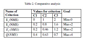 5. Evaluation of the total criterion valueQ(NMS) .