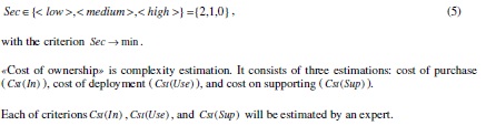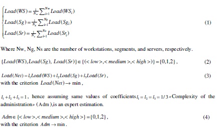 Let us introduce four types of criteria for this group: load ( Load ), complexity of the administration ( Adm ), network security ( Sec ) and cost of ownership for the system ( Cst ).