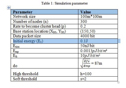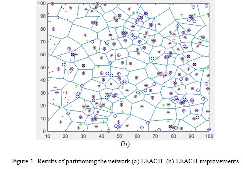 We ran simulations on MATLAB, for the 300 nodes in the network 100m x 100m, with unequal energy between the nodes to show the uneven influence between nodes in the network. Location BS located at (150.50), length of per message is 4000 bytes, the energy lose when data transmission and energy lost when receipt the data is Eelec=50nJ/bit, transmit amplifier types Efs=10pJ/bit/m2 and Emp=0.0013pJ/bit/m4, Maximum number of rounds is 100 laps. As for improved algorithms we use the hard threshold h=100 and soft threshold s=2, the sensed value sv=0 to determine the time of data transmission