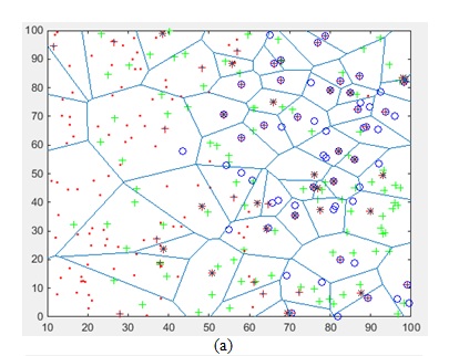 Figure 1(a) and 1(b) presented results for the 300 node clustering randomized, as can be seen the proposed protocol has better network clustering, the amount of each cluster node spread evenly and distance from CH to the members of the cluster node short.