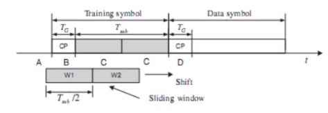 Figure 3: STO estimation using the repetitive training symbol, (period = Tsub/2).