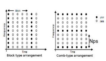 Channel estimation techniques for OFDM systems can be divided into two major groups: blind and non-blind. Methods for blind channel estimation exploit the statistical behavior from the received signals and require a lot of data. Therefore, they suffer from serious performance degradation in fast fading channels. Moreover, in the non-blind channel estimation methods, information from precedent channel estimates or a portion of the transmitted signal is present to the receiver to be used for channel estimation. In the data aided channel estimation,known data by the receiver is inserted into the OFDM symbols so the actual channel can be estimated. Two techniques are commonly used: sending known information over one or more OFDM symbols with no data being sent (called channel estimation with training symbols), or sending known information together with the data (called pilots aided channel estimation).