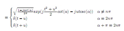 Where p is a real number known as FRFT order, α=pπ/2 is the angle of FRFT, and Kα(t,u) is the kernel of FRFT: