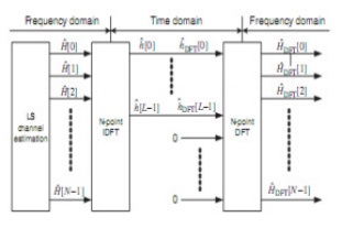 This section deals with the proposed method. A conventional OFDM system is used but Fractional Fourier Transform FRFT block is used instead of classical FFT. We use CAZAC sequences as pilot sequences. The pilot sequences are inserted in combo-type mode. The Timing Offset estimation is done in frequency domain. After STO estimation, compensation is done in time domain. After channel estimation is used in order to best recover the transmitted signal. LS with DFT channel estimator is used with linear interpolation. The DFT-based channel estimation technique has been derived to improve the performance of LS or MMSE channel estimation by eliminating the effect of noise outside the maximum channel delay, [1]. The DFT block diagram is shown in figure 6.