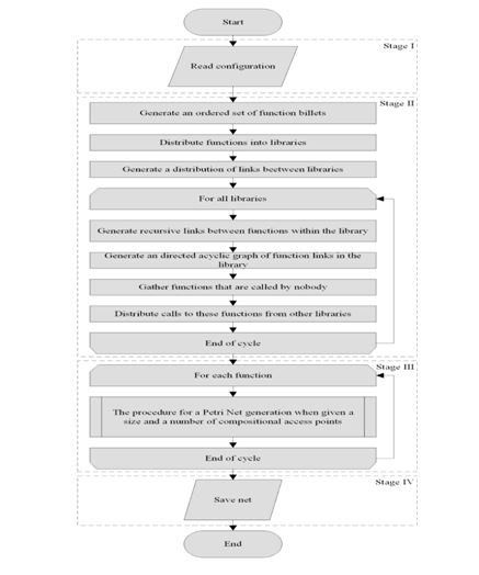 The work was funded by presidium of Russian Academy of sciences Fundamental research program grant № 0262 2015 0139. Have roughly about 106 elements, and for a programs of real complexity it can be even ten more times larger. Representation in the form of incidence matrix of such Petri nets in computer memory is resource intensive and inefficient. Taking into account that the “mobility” of tokens in program modeling Petri nets is related to the computational processes in the program, the standard algorithm of reach ability tree construction can be optimized both to reduce the required amount of RAM and to speed up the building process in multiple times. However in practice, building such large program models is still not a routine process [5]. For this matter an automated mechanism for generating Petri nets simulating programs of the required size with predetermined characteristics is required that is to provide an experimental base for development of algorithms and data formats for large-scale Petri nets processing. In this paper, the authors propose such generation mechanism based on templates [6]. Earlier, the authors developed a mechanism that allows building so-called simple Petri nets, and now this mechanism was adapted to generate compositional models, i.e. models built from the composition of Petri nets.
