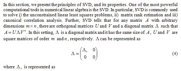 An introduction to the SVD has been introduced. The effect of using SVD in MIMO communication system has been discussed. It converts the MIMO system into parallel channel equal to the rank of the channel matrix,. An iterative SVD technique is presented which is used to estimate the channel matrix from the transmit antennas to the receive antennas. Simulation results that show the effect of the number of transmit/receive antennas, the length of the training sequence and number of iterations on the performance of the presented iterative technique have been drawn.