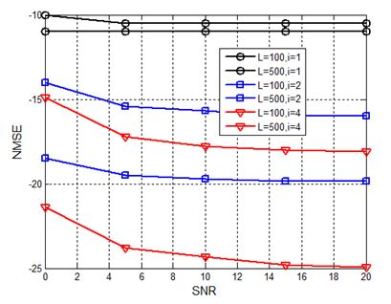 Figure 1. The NMSE of the channel matrix estimation Vs. the signal-to-noise ratio (SNR).