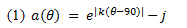 The second type of noise is Angle Dependent Noise. The Angle Dependent Noise models the fact that measurements become noisier as the angle between the normal from the antenna array on the base station and the mobile node increases, denoted by θ in Figure 1. More specifically, when the mobile node is aligned in front of the base station antenna (i.e., close to the normal from the antenna array), there is little noise compared with when the mobile node is oriented, for example, near 90 degrees from the normal of the antenna array. Accordingly, we use a nonlinearity function to model the effect of the noise, as defined in Equation 1, where angle θ is defined in Figure 1, k controls for the magnitude of the nonlinearity, and j controls for the base amount of noise (i.e., noise when the angle is 0 degrees).