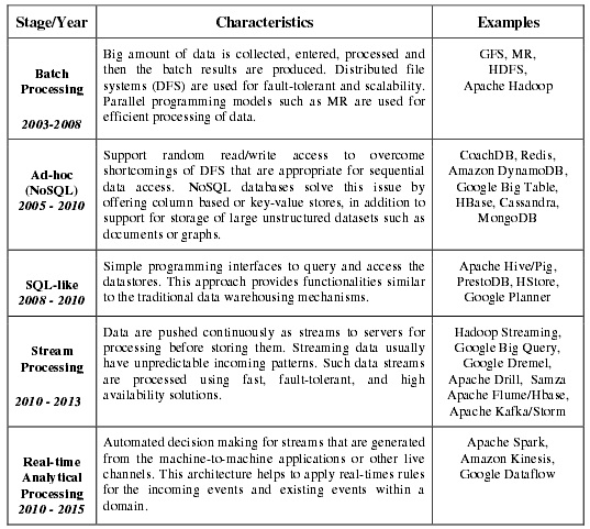 Table 1, Evolution of the Big Data from batch to real-time analytics processing [70]