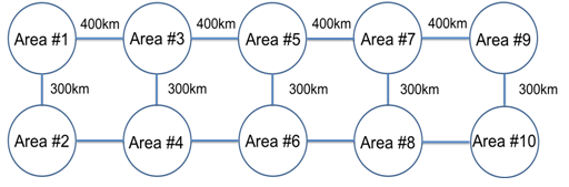 2) Network structure: The ladder-shaped model illustrated in Figure 6, which simulates the shape of Japan, is used as in Reference [8].