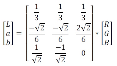 Equation (1) represents a mathematical relationship between L, a, b and R, G, B [11]: