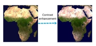 The enhancement of image contrast yields better clustering results when the clustering is based on colors. Figure 3 shows an example for image contrast enhancement.