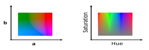 The L, a, and b axes provide a practical combination of the orthogonal simplicity of the RGB color space and the other color spaces such as HSI which are used in many color management systems[11].