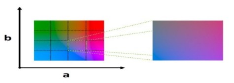 The L*a*b color space is considered to be “perceptually uniform,” which means that any detectable visual difference in the color space can be represented by a constant distance in any direction or location. L*a*b is used widely as a standard space to compare colors [2], [11]. In this paper, we are interested in the ( a , b ) component only.