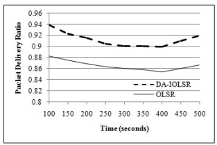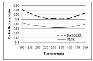 The virtual backbone is thereby ensured to remain connected even in the event of rapid topology changes. As a result, DA-IOLSR protocol is able to provide better PDR for various combinations of node speed and pause time, due to its dynamic adaptability to topology changes.