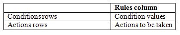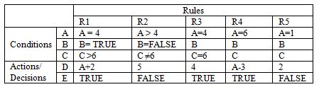 A rule is constituted by the association of conditions and actions in a given column. The set of rule columns should cover all possibilities that may occur depending on the observed conditions and the actions to be taken. Depending on the current conditions of a problem, we look for which table rules satisfy these conditions: